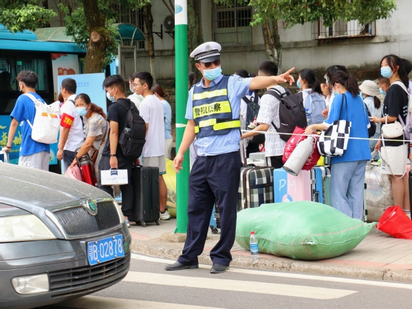 为保证校内交通秩序,校内主要路口都设有大尺寸的校园标识方便新生查看,保卫处全体员工和志愿者在校大门、主干道和各路口轮班值守,新生报到两天校内秩序井然。