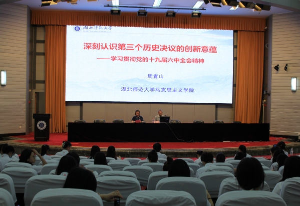 随后,马克思主义学院周青山教授为青马学员做了主题为“深刻认识第三个历史决议的创新意蕴——学习贯彻党的十九届六中全会精神”的报告。