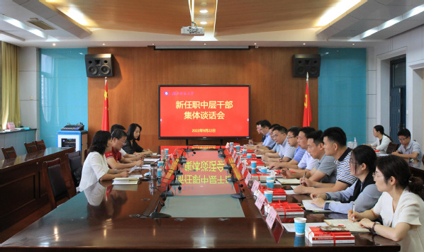 本网讯 9月22日上午,学校在大楼505会议室召开新提任中层干部任前集体谈话会。校党委副书记、校长雷儒金,校纪委书记、监察专员陆咏梅出席会议并讲话。会议由校党委副书记马列军主持。