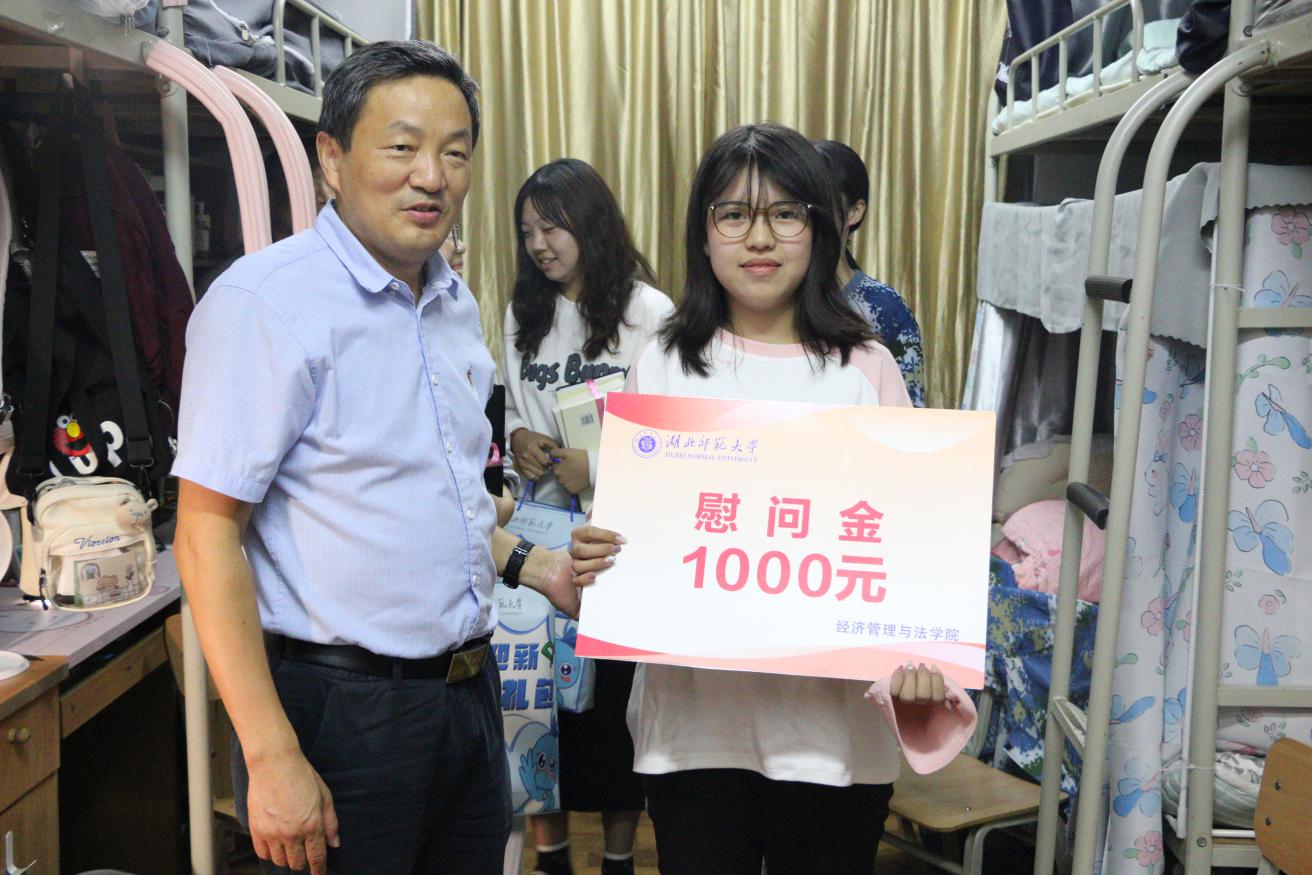 雷儒金一行来到23栋学生宿舍,首先看望了援黄抗疫英雄钟辉之女钟嘉雨,表达了对援黄抗疫英雄的感谢,勉励钟嘉雨同学向父辈学习,延续“苏黄”情谊,传承抗疫精神,学有所成回报社会,并为她送上慰问金。