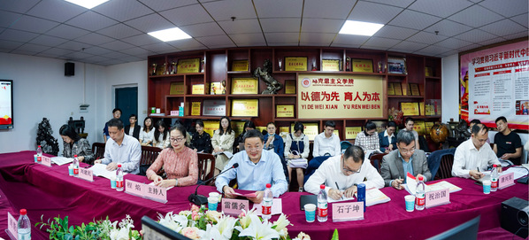我校校长雷儒金,湖北省政协理论研究中心主任周青山,学校科研处、宣传部、统战部的负责人,马克思主义学院领导班子及师生代表60余人出席了会议。会议开幕式由马克思主义学院党总支书记程焰主持。
