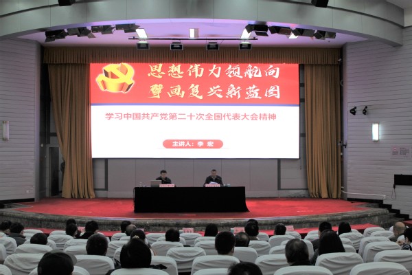 李宏以《思想伟力领航向 擘画复兴新蓝图——学习中国共产党第二十次全国代表大会精神》为题,从“继往开来:处于关键历史关口的一次重要大会”“数读报告:15个关键词带你了解党的二十大”“伟大变革:过去五年工作情况和新时代十年成就”“擘画蓝图:以中国式现代化全面推进中华民族伟大复兴”“开启新篇:为全面建设社会主义现代化国家而团结奋斗”和“全面落实:确保党的二十大精神在湖师大落地生根”等六个方面,对党的二十大精神作了全面宣讲和深入阐释。