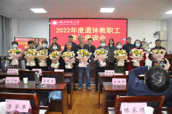 会议最后,与会领导和荣休教职工们一起合影留念,并向他们献上鲜花、颁发荣休证书和纪念品。