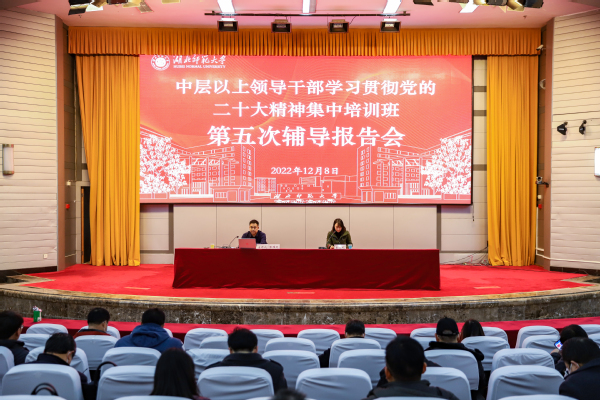 本网讯 12月8日下午,学校举行“完美网页版中层以上领导干部学习贯彻党的二十大精神集中培训班”第五次辅导报告会,我校马克思主义学院张耀天副教授应邀作专题报告。报告会采取线上、线下的形式进行,校领导、全校正处级领导干部在教育大楼报告厅主会场参加报告会,副处级领导干部、各党支部书记及全体教职工党员在各分会场参加报告会。报告会由组织部负责人主持。