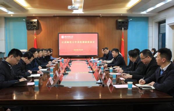 本网讯 (通讯员 李颖薰)2月24日上午,江西师范大学副校长刘俊一行来校调研,党委书记李宏出席活动并主持座谈会,相关职能部门负责人参加会议。