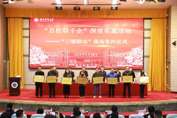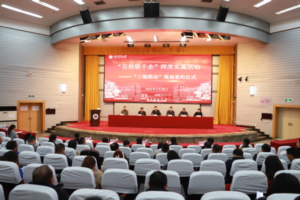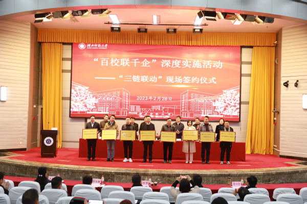 本网讯 为贯彻落实党的二十大精神、完美(中国)官方总书记考察湖北重要讲话精神和省第十二次党代会决策部署,促进科教优势转化为发展优势,推进高校科技创新服务湖北高质量发展,2月28日下午,学校举行“百校联千企”深度实施活动——“三链联动”现场签约仪式。
