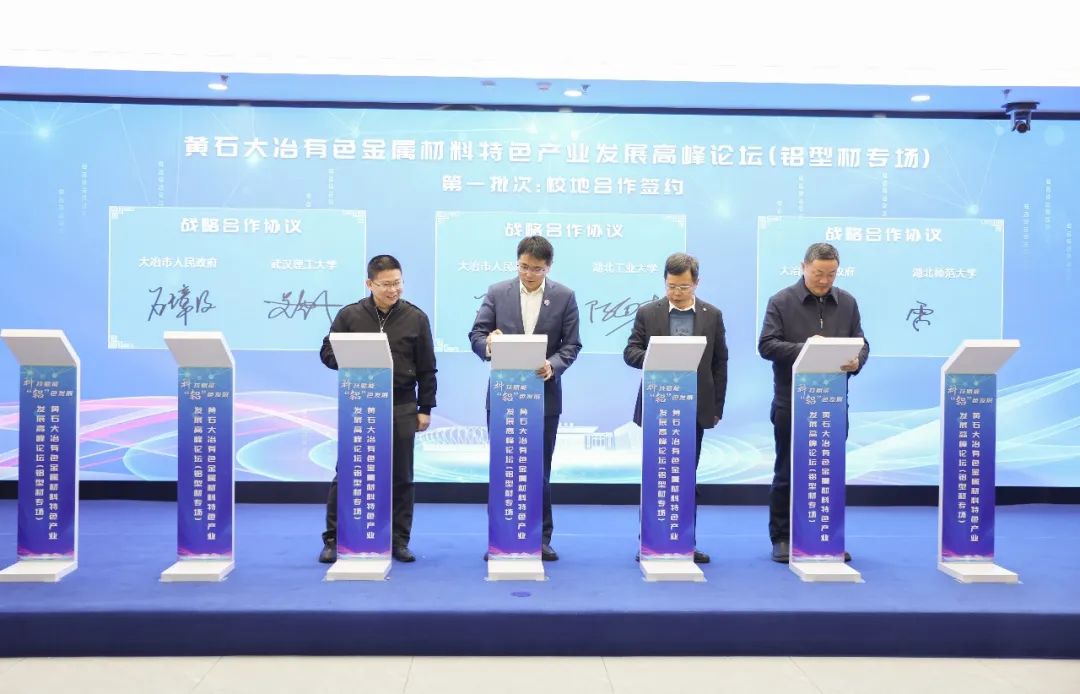 本网讯 3月4日上午,校党委副书记、校长雷儒金参加大冶市政府在黄石(武汉)离岸科创园举行黄石大冶有色金属特色产业集群高峰论坛,与大冶市政府签订了校地合作协议。此次开展校地合作,旨在加快推进大冶市铝型材产业创新升级。学校科研处相关负责人参加活动。