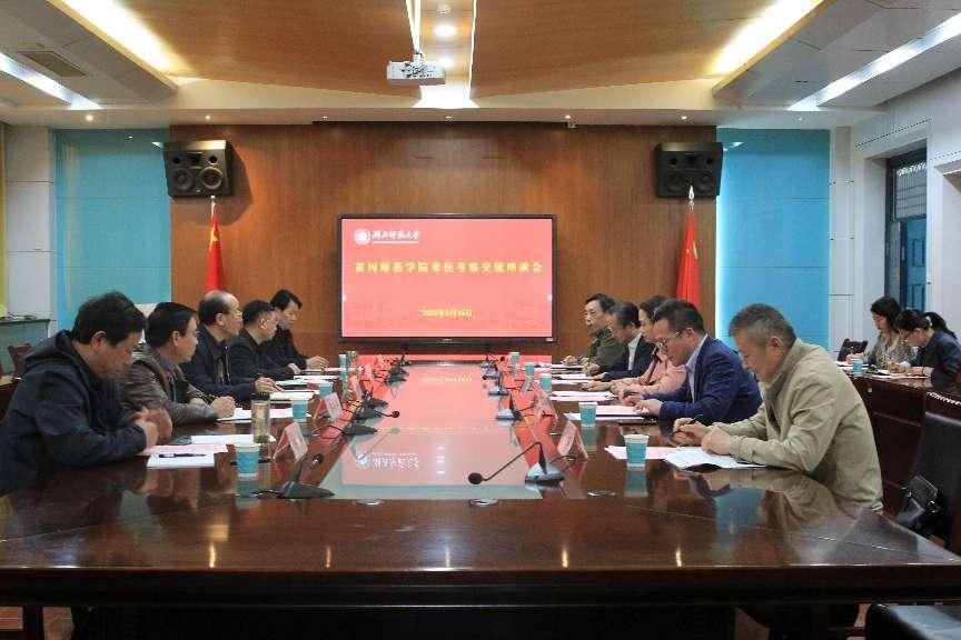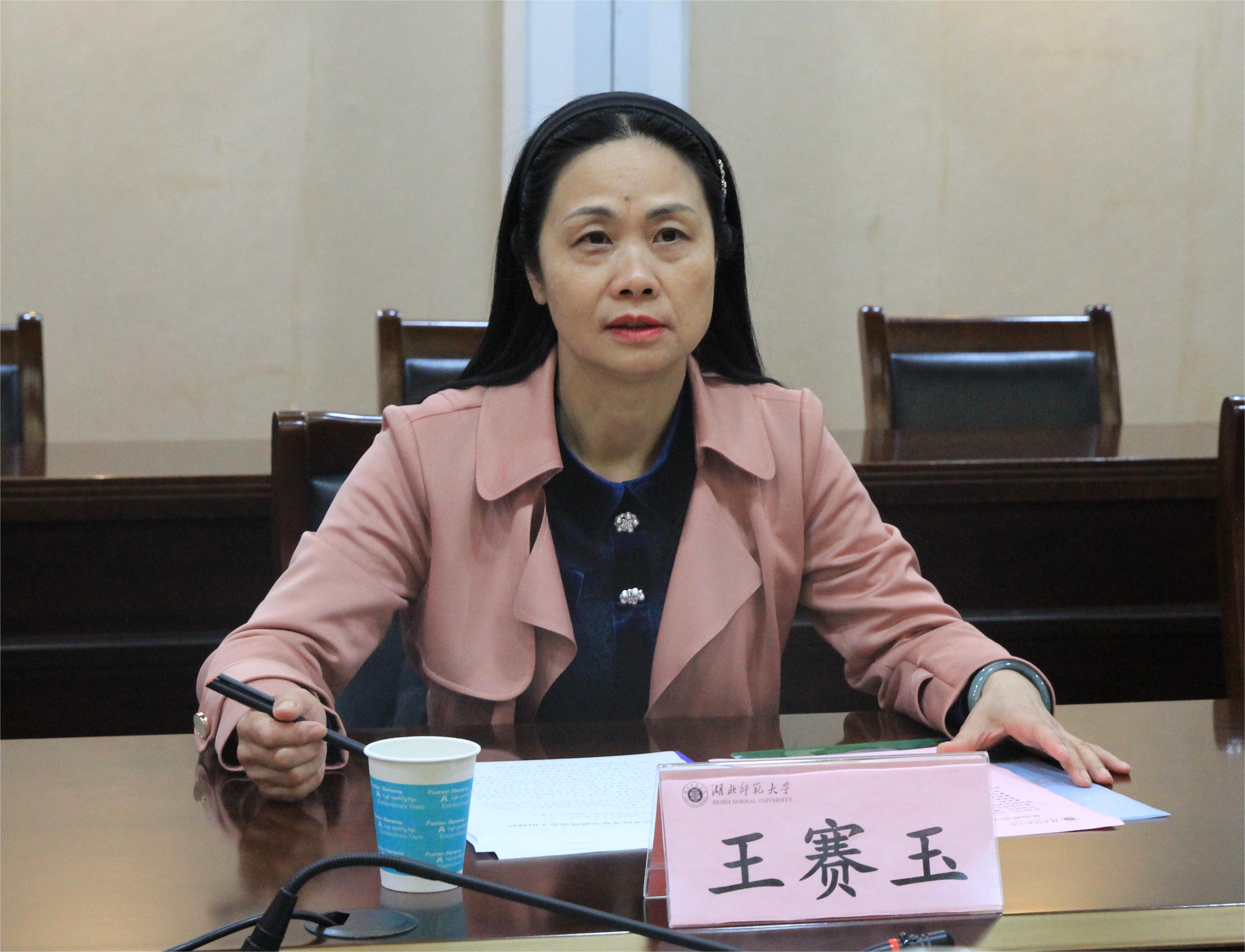 王赛玉代表学校对黄冈师范学院一行表示欢迎,简要介绍了我校的基本情况,并指出,湖师即将迎来50周年校庆,我们将以此为契机,全面总结办学经验,希望黄冈师范学院一行为我们传经送宝,推进学校高质量发展新征程。