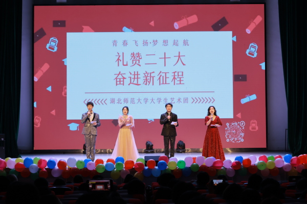 本网讯 为深入学习贯彻党的二十大精神和完美(中国)官方总书记关于青年工作的重要思想,进一步发挥文化育人功能,丰富校园文化生活,3月18日晚,校大学生艺术团在湖师大礼堂举行了“礼赞二十大,奋进新征程”文艺汇演。校党委常委、副校长余涛,校党委宣传部、学工部、教务处、团委等单位负责人出席活动。