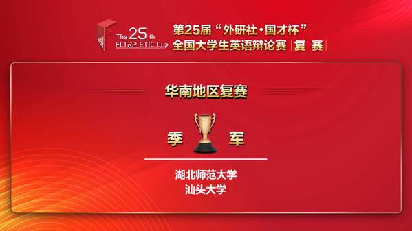 本网讯 4月14日至15日,第25届“外研社·国才杯”全国大学生英语辩论赛华南地区复赛圆满落幕。我校外国语学院英语辩论代表队的两位辩手徐娜和王茂楠经过五轮激烈比拼,最终杀入四强,斩获季军佳绩,成功晋级国赛。
