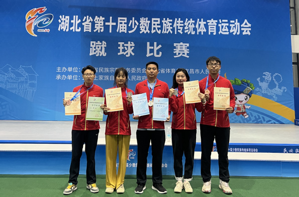 本网讯 4月18日到4月22日,湖北省第十届少数民族传统体育运动会在宜昌市举行。我校民族式摔跤代表队获得一金三银七铜的优异成绩,蹴球队获得二等奖和三等奖,体育学院李志鸿老师获优秀教练员称号。