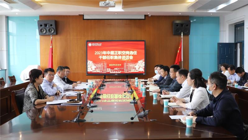 本网讯 5月23日上午,学校召开中层正职干部任职谈话会。校党委书记李宏,纪委书记、监察专员陆咏梅以及新任职中层正职干部参加会议。会议由党委副书记、校长雷儒金主持。