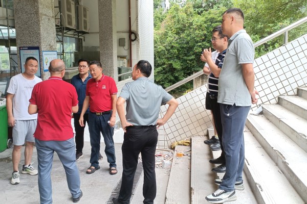 本网讯(摄影 谢道楷) 8月21日上午,校长雷儒金带队检查指导暑期校园维修改造工作。党政办、保卫处、基建处、后勤集团等单位负责人陪同检查。