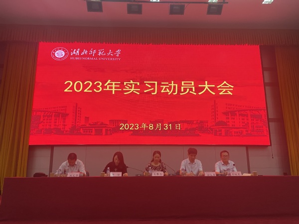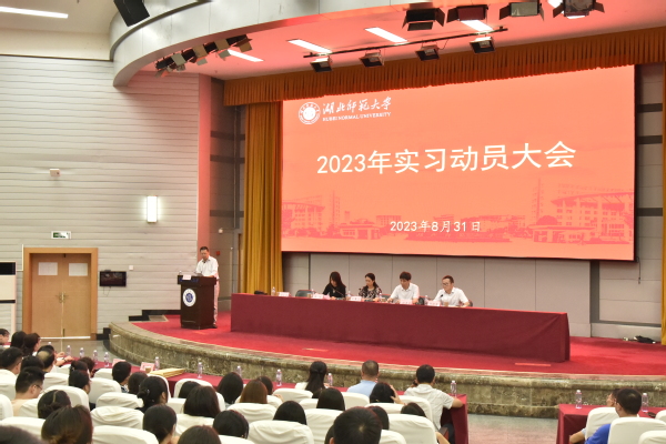 本网讯 8月31日下午,我校在教育大楼报告厅召开2023年实习动员大会。副校长王赛玉,学工部负责人,校级教学督导代表,各教学院分管学生以及教学工作负责人、教学秘书、辅导员、实习指导老师、毕业班班主任,实习基地学校代表、实习生代表等参加了会议。会议由教务处处长胡艳军主持。
