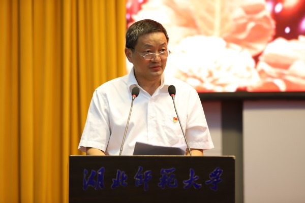 企业嘉宾中国建设银行黄石分行行长段琼玺在致辞中向我校教师致以节日的问候和敬意。