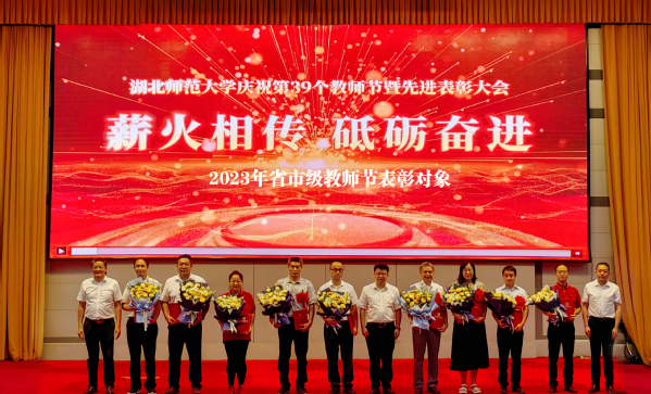 校党委副书记马列军宣读了2023年学校教师节表彰文件,谭振义等十人获得“优秀教师”称号,许爱凤等十人获得“师德标兵”称号,吴盼盼等十人获得“管理服务育人先进个人”称号。此外,我校多名教师获得省市多项荣誉,向明亮获“2023年荆楚好老师提名奖”,王卫东获黄石市“十佳师德标兵”,王成、刘娜获黄石市“优秀教师”,李柏林、李前获黄石市“优秀班主任”,付光槐、唐兴军荣获黄石市“优秀青年教师”,王浩荣获黄石市“优秀教育管理者”。