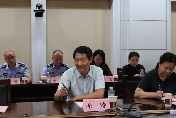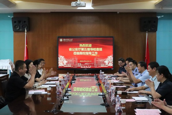 余涛就我校平安校园建设情况作了汇报。他表示,学校始终站在讲政治的高度,深刻认识维护学校安全稳定的极端重要性。坚持系统思维,强化落实安全稳定主体责任,定期做好形势研判维稳工作,夯实安全基础,坚持“特色发展”,通过“七防工程”建设,逐步完善了“一月一主题、一月一行动”的安全教育模式,构建重点工作领域校园文化全链防控机制、少数民族学生教育管理全域协同育人机制和校地“联训、联勤、联防、联控、联宣”全联安保工作机制,形成了“四全安保”的“湖师模式”。目前,全省2023年度平安校园“七防工程”建设优秀案例评选工作已经启动,我校的《“五精工作法”--精准“心防”模式创新与实践》已向省教育厅申报参评。