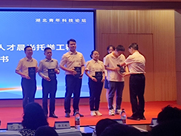 图为湖北省科学技术协会党组书记周德文为任洋洋颁发入选者证书。