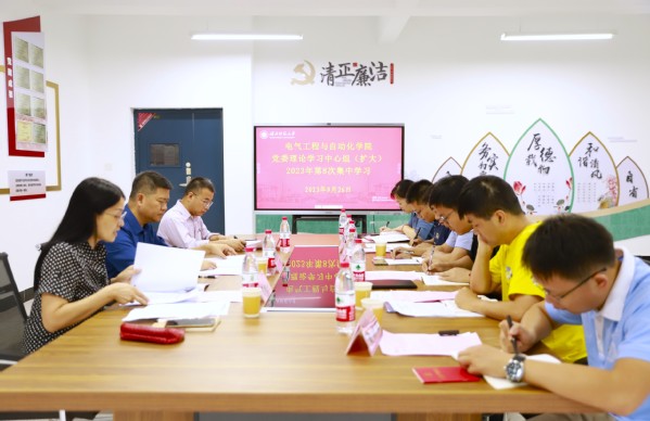 本网讯 9月26日下午,电气工程与自动化学院党委理论学习中心组召开2023年第八次集中学习(扩大)会。校党委副书记马列军到会巡听督导并讲话,校宣传部负责人参加督导。电气学院党委理论学习中心组成员,综合办、分工会、团总支负责人,各党支部书记参加会议,会议由电气学院党委书记丁桂兰主持。