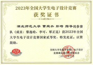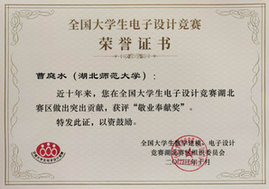 我校物理与电子科学学院曹庭水、彭琦老师指导作品“信号分离装置”获全国二等奖、“信号调制方式识别与参数估计装置”获湖北省三等奖;李艳生、王永贺老师指导作品“运动目标控制与自动追踪系统”获湖北省三等奖。曹庭水获“敬业奉献奖”。