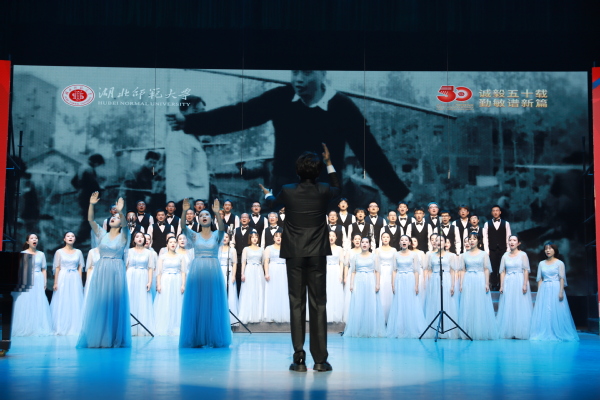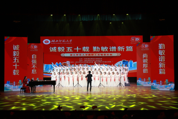 伴随着广为流传的《小燕子》乐曲的奏响,音乐会缓缓拉开帷幕。整个音乐会共十四首优美的乐曲,透过《匆匆那年》的歌声,重温了72把拐手椅,40张双层床,2.4万元开办费,筚路蓝缕创办这所黄石地区第一所大学的珍贵回忆。离退休教职工演唱的红色经典曲目《唱支山歌给党听》拨动了无数人的心弦,展现了一代代湖师人移山填湖、筑道建楼、奋发图强、建设美好生活的坚定信念,抒发了对党的无限深情。《迎风飘扬的旗》用混声合唱的方式,铿锵有力地唱出了湖师人生逢盛世,肩负重任的责任感和使命感。在音乐学院《没有共产党就没有新中国》的歌声中现场气氛达到高潮。最后,音乐会在全体师生合唱校歌《我们是光荣的湖师人》缓缓落下帷幕。