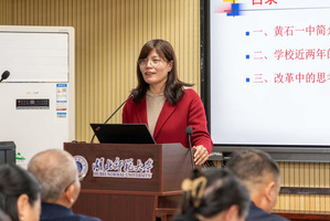 沙市中学校长徐善慧作报告 完美网页版附属黄石一中校长姜小燕作报告