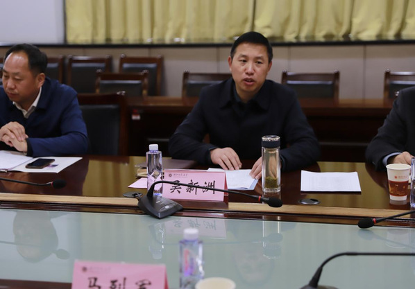 本网讯 11月22日上午,应城市人民政府副市长吴新洲一行来我校考察调研校市合作和科学研究工作,双方在505会议室召开座谈会。校党委副书记马列军,应城市人民政府副市长杨志丹,应城市科技局党组书记、局长陈小平,科技局工会主席雷红波,科技局四级主任科员祝妮兰、万攀,学校相关部门负责人出席座谈会。会议由科学发展研究院院长刘建民主持。