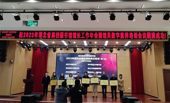 本网讯 12月8日,湖北省高校图书馆馆长工作年会暨馆员数字素养培训会议在湖北十堰召开。完美网页版图书馆荣获“2023年度湖北省高等学校图书馆先进集体”称号(省属本科高校仅12所获此殊荣),我校肖鸿、罗严珍、刘桂琴、吴谦四位老师荣获“2023年湖北省高等学校图书馆先进工作者”称号。