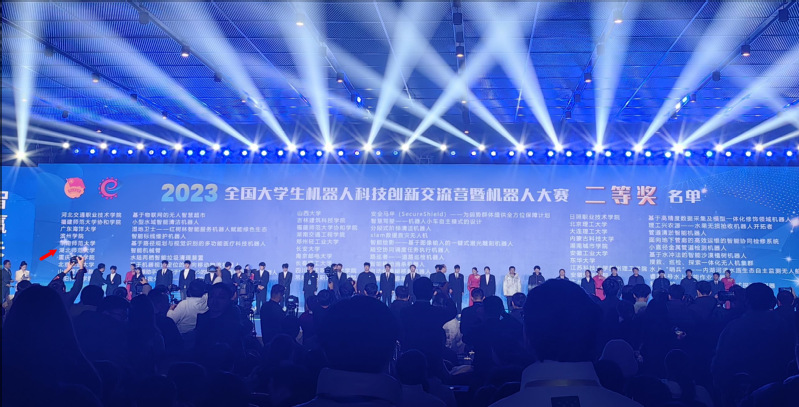 本网讯 近日,2023年全国大学生机器人科技创新交流营暨机器人大赛决赛在山东日照举行,校团委负责人刘晓光及学院指导老师带队参加比赛,我校《智能机械臂》项目荣获全国二等奖,该项目由我校物理电子与科学学院王永贺和李艳生老师的指导陈辰睿、林宇航、汪乔舸三名同学共同完成。