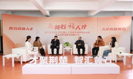 为进一步搭建黄石市地方政府和我校毕业生互动交流平台,本次招聘会特在直播间举行“在黄石·话人才”大学生就业主题分享活动。活动中,我校招就处负责人介绍了学校基本情况及毕业生就业工作推进情况,黄石市人才中心负责人介绍了近些年我市在促进高校毕业生高质量就业方面所做出的努力和取得的成效。