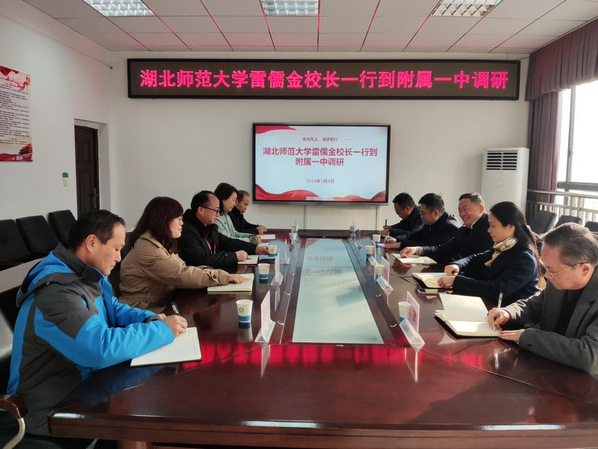 本网讯 为统筹做好岁末年初各项工作,共同推进附属黄石一中高质量发展,1月9日,校长雷儒金带队赴附属黄石一中调研交流并召开座谈会。副校长王赛玉,党政办、教师教育学院等部门负责人,附属黄石一中新一届领导班子参加了本次调研座谈。座谈会由王赛玉主持。