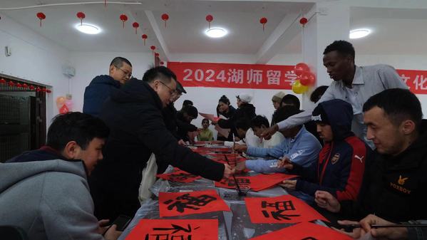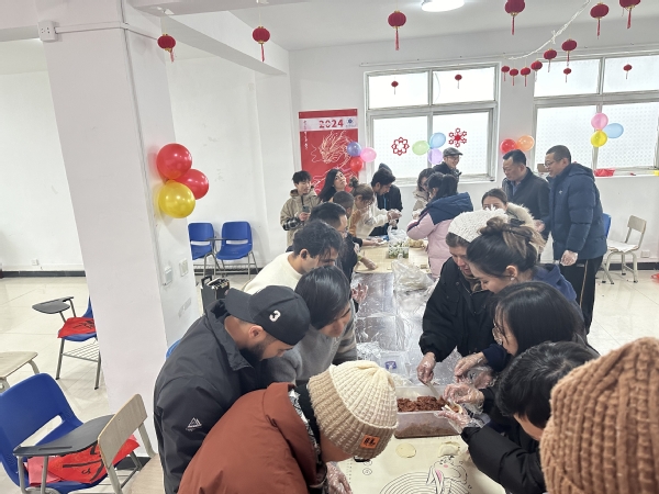 本网讯 2月2日,是传统农历小年,我校留学生春节年俗文化体验活动在学舍22栋5楼活动室顺利举行。校长雷儒金,党政办相关负责人、国际交流合作处班子成员、美术学院专业教师和在校留学生等三十余人参加活动。