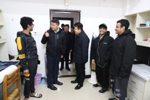 本网讯 为确保开学各项工作安全有序进行,2月29日下午,校党委书记李宏、校长雷儒金带领班子成员,及相关部门负责同志检查指导学校各项开学准备工作。