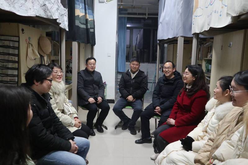 本网讯 3月3日晚,校党委书记李宏、校长雷儒金带领校领导班子成员深入学生宿舍,走访慰问寒假返校学子。学工部等职能部门领导、各学院相关负责人陪同走访。