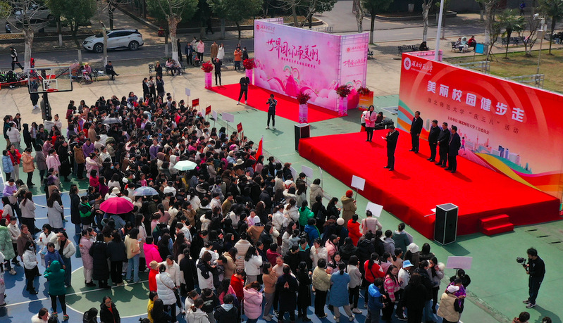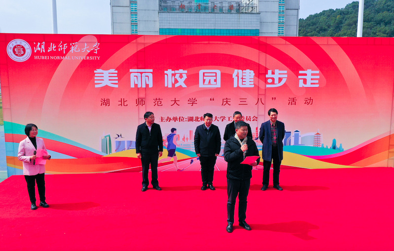 本网讯 3月7日中午,在春意盎然的季节里,我校女教职工迎来了一年一度的“三八”国际劳动妇女节女职工健步走活动。此次活动由校工会精心组织,校党委书记李宏,校长雷儒金,校党委副书记马列军,副校长余涛,校党委常委肖六亿等领导出席了此次活动,向全体女教职工致以节日的问候和衷心的感谢。本次活动由校女职工委员会主任俞玲主持。