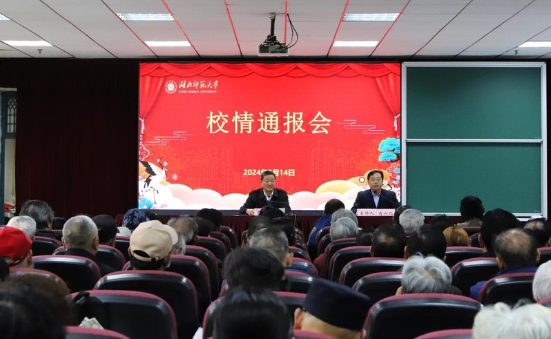 本网讯 3月14日上午,我校在信息大楼报告厅召开离退休教职工校情通报会。校长雷儒金,党委常委肖六亿,近两百名离退休教职工和离退休工作处全体成员参会。会议由肖六亿主持。