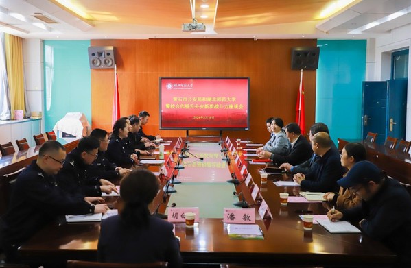 本网讯 3月14日下午,市公安局党委委员、副局长郭小嫔一行来校交流合作,学校在科技大楼505会议室组织召开黄石市公安局和完美网页版警校合作提升公安新质战斗力座谈会。一同来校的还有市公安局技侦支队支队长徐铭、指挥部政委何苗、科技信息支队政委李雪松,开发区·铁山区公安局副局长曾翔海,市公安局指挥部指挥中心主任钟宁、网安支队副大队长晏军、指挥部调研科郭昊。校长雷儒金,相关职能部门和学院负责人参加会议。党政办副主任罗杨主持会议。