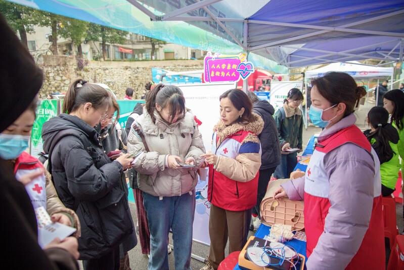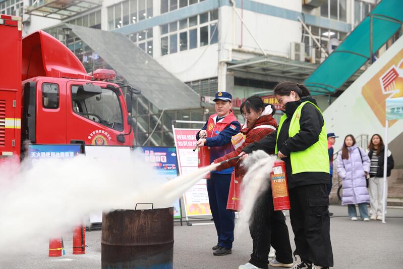 活动现场,该校团委志愿者通过互动交流和趣味游戏的方式,深入讲述雷锋的生平故事,阐释雷锋精神的深刻内涵。黄石市疾控中心志愿者围绕抑制艾滋、拒绝烟草、诺如病毒防控、公共卫生应急等主题设置展板和发放宣传册,详细讲解传染病预防方法,普及健康知识。黄石市中心血站志愿者现场提供专业医护指导,鼓励同学们用热血传递希望,为社会公益事业注入温暖力量。黄石港区红十字会志愿者聚焦心肺复苏、止血包扎等实操技能,让同学们在亲身体验中理解急救的基础知识。黄石港区消防救援大队志愿者以灭火器、消防栓的使用方法为核心,强调正确处理火灾的重要性,通过灭火表演直观地向同学们传授火灾的应对方法。黄石港区公安分局国保大队、沈家营派出所志愿者结合实际案例细致地为同学们讲解常见诈骗手段和相应的防范措施。该校保卫处志愿者针对防盗、防骗、电动车安全等常见校园问题展开咨询服务,全方位提升同学们的安全意识和自我保护能力。