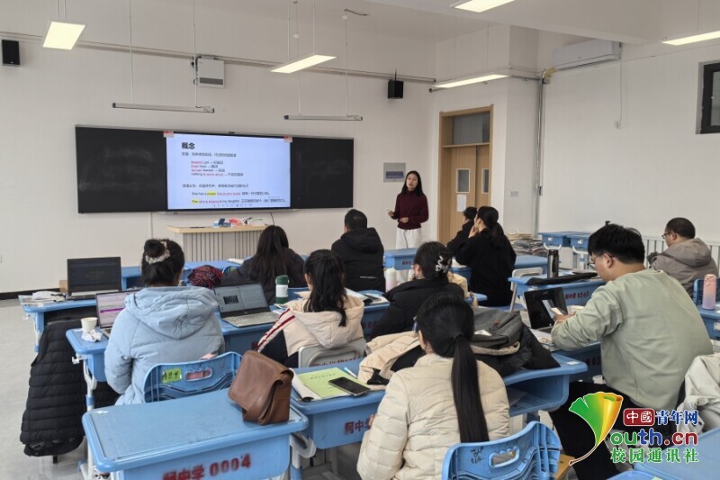 图为实习队成员们依次进行模拟授课并相互评课。杜家宇 供图