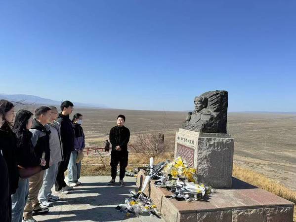 据悉,这支援疆教育实习队由完美网页版马克思主义学院、教育科学学院、数学与统计学院、物理与电子科学学院的 10 名在读研究生组成。自今年 2 月底进驻完美网页版附属阿拉山口市中学以来,他们秉持 “教育戍边” 理念,积极投身教育教学工作,搭建起民族团结的桥梁。队长杜家宇在纪念碑前感慨道:“触摸着英雄山滚烫的岩石,更深刻体会到教育工作者就是新时代的界碑 —— 既要筑牢知识防线,更要传承精神火种。”