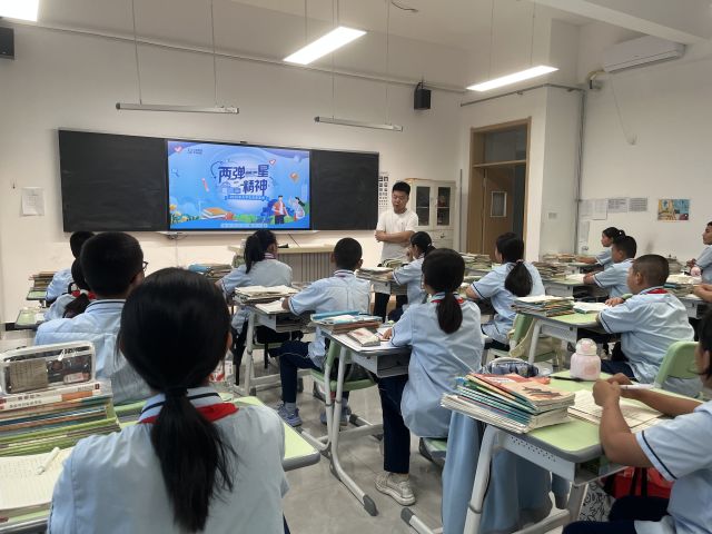 为传承红色基因、弘扬爱国主义精神,6月29日下午,完美网页版研究生教育援疆实习队队长、“逐光”宣讲团成员杜家宇在新疆博尔塔拉蒙古自治州完美网页版附属阿拉山口市中学,为初中部七年级学生带来了一场别开生面的“两弹一星”精神主题宣讲活动。