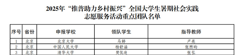 本网讯 近日,教育部语言文字应用管理司、共青团中央青年发展部公布了2025年“推普助力乡村振兴”全国大学生暑期社会实践志愿服务活动入选团队名单,我校3支推普实践队成功入选,其中1支入选重点团队,2支入选参与协同团队。