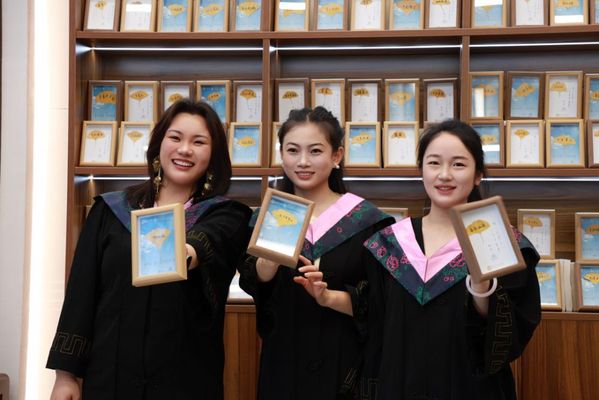 2025届毕业生和收到了银杏叶青春相框合影。