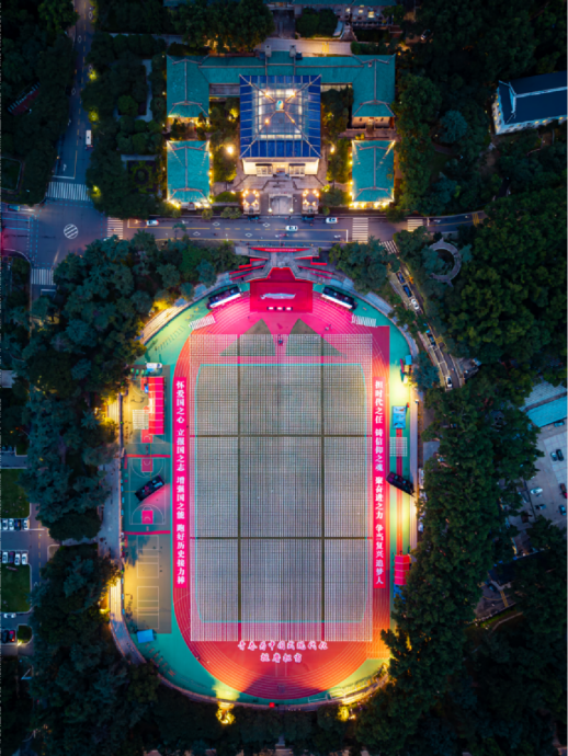 毕业典礼前夜,位于武大樱顶的老图书馆和位于九一二操场前方的行政楼灯火全亮,这是武汉大学一年一度为毕业生准备的最高礼遇,寓意“愿脚下有路,归途有光”。