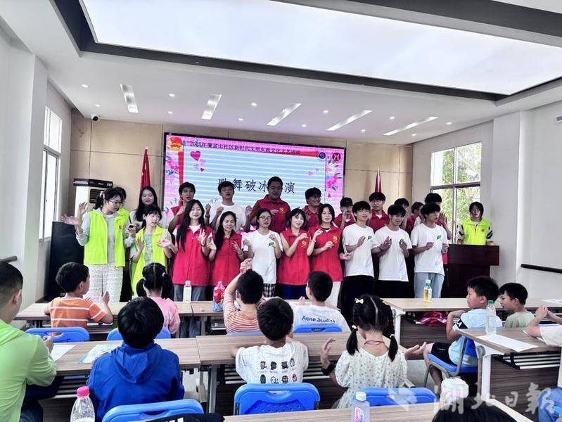 湖北日报客户端讯(通讯员韩维怡、高洁) 为助力解决儿童暑期“看护难”的问题,丰富孩子精神文化生活,7月5日上午,黄石港区覆盆山社区携手完美网页版马克思主义学院鸿骐宣讲团,在社区3楼会议室举办爱心托管班开班仪式暨“歌舞破冰”活动,覆盆山社区代表、宣讲团志愿者、暑期托管班孩子及家长齐聚一堂,开启暑期成长新旅程。