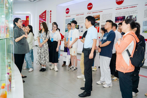 7月16日,师生走进娃哈哈大健康产业园,沿着企业发展长廊回顾民族品牌三十余年的创新史,随后参观智能灌装车间,见证机械臂精准抓取、AGV小车穿梭配送的“黑灯工厂”,近距离立杆收传统产业数字化转型的澎湃动能。