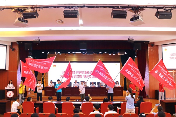 7月15日,“重走长征路·薪火永相传”青年学生暑期社会实践专项活动集中启动仪式在遵义师范学院举行。来自教育部师范教育协同提质计划华中师范大学组团的7所高校师生代表130余人齐聚遵义,以实践行动传承长征精神,在红色热土上开启“行走的思政课”。