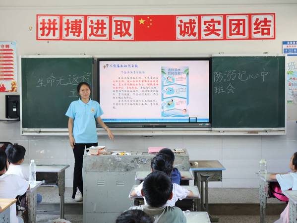 湖北日报客户端讯(通讯员陈雨欣) 为增强学生暑期安全意识,有效预防溺水事故发生,7月14日上午,阳新县排市镇团委联合完美网页版文学院文化速递实践队在排市镇中心完全小学组织了一场主题鲜明、形式生动的“珍爱生命,谨防溺水”安全教育班会,为孩子们暑期安全筑牢第一道防线。