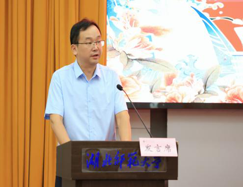 校党委书记李宏从党建工作持续发力、申博工作稳步推进、教育教学不断提升、教师教育协同发展、科技创新动能更足、国际交流更加密切、人才队伍日益壮大、管理服务规范有序等八个方面全面总结了学校2025年上半年重点亮点工作,并简要回顾了暑假期间的工作。李宏强调,要坚持以实干为引领,以取得实效为目标。通过加强党的作风建设,来开创事业发展的全新局面。号召大家成为实干家,为服务湖北省和学校的核心战略目标贡献更大力量。
