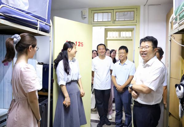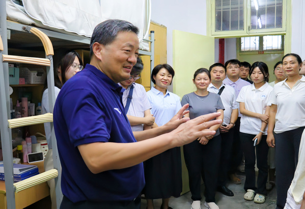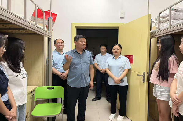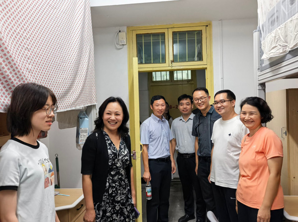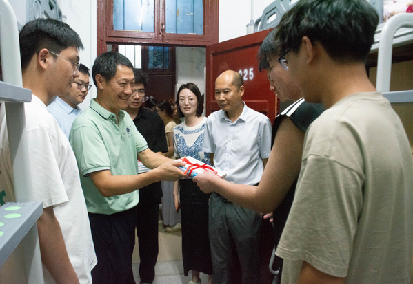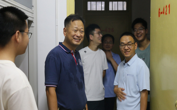 本网讯 9月5日、6日晚,校党委书记李宏、校长雷儒金带领在校领导班子成员,深入学生宿舍区,亲切看望慰问刚刚入学的2025级新生,为他们送上学校的关怀与新学期的美好祝愿。校党政办、学工部等职能部门负责人以及各学院党政班子成员、辅导员、班主任共同参加了走访活动。